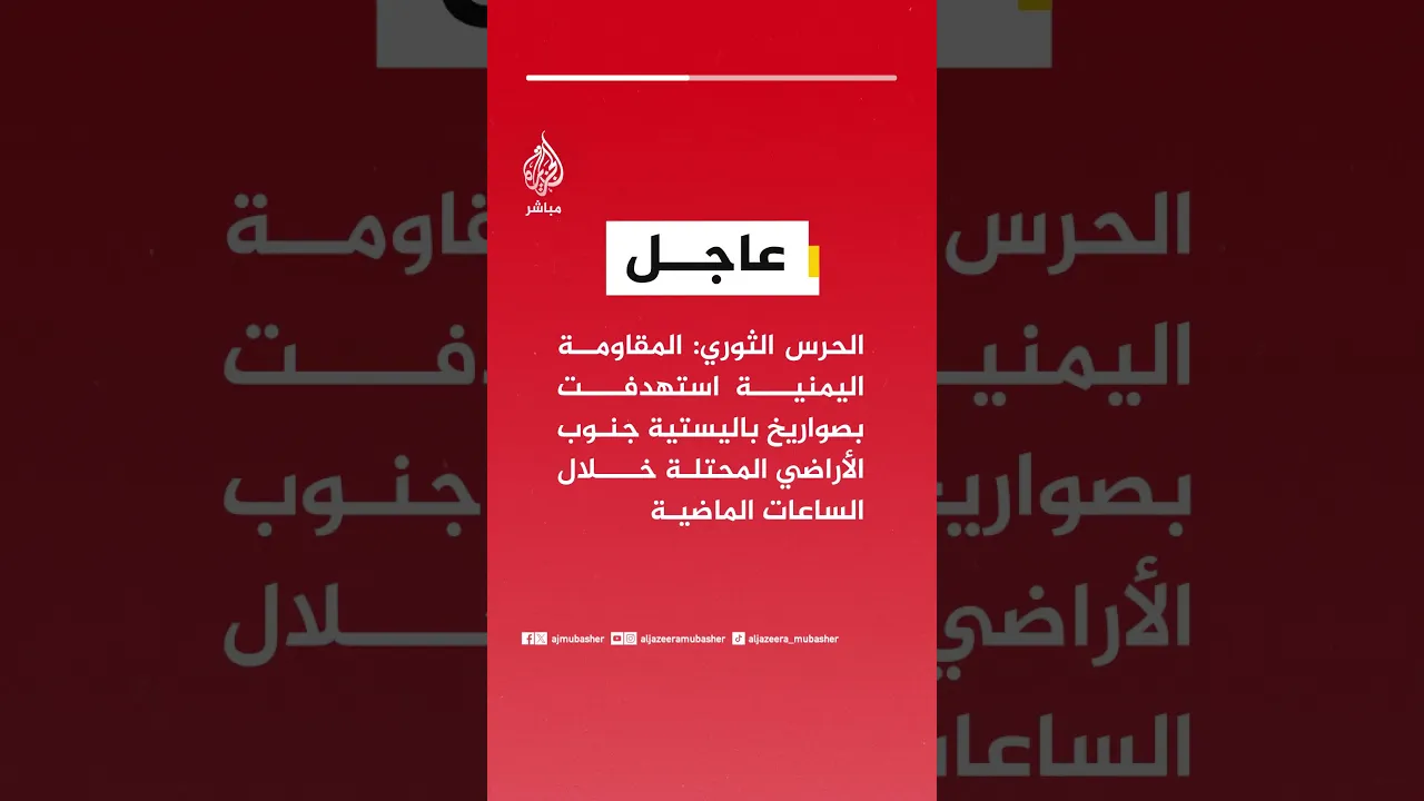 عاجل | الحرس الثوري: المـقـ ـاومـة اليمنية استهدفت بصواريخ باليستية جنوب الأراضي المحتلة خلال الساعات الماضية