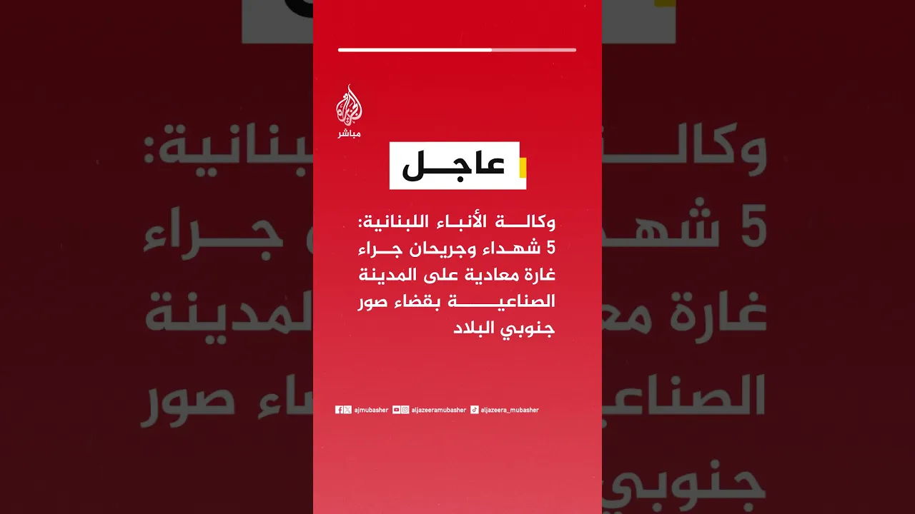 عاجل | وكالة الأنباء اللبنانية: 5 شـهـ ـداء وجريحان جراء غارة معادية على المدينة الصناعية بقضاء صور جنوبي البلاد