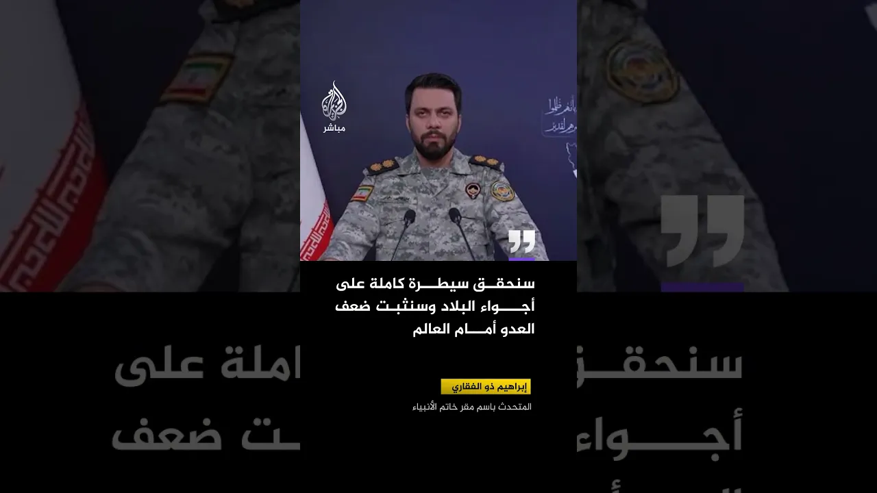 المتحدث باسم مقر خاتم الأنبياء في إيران : سنكشف عن منظومات دفاعية جوية أحدث وسنحقق سيطرة تامة على أجواء البلاد