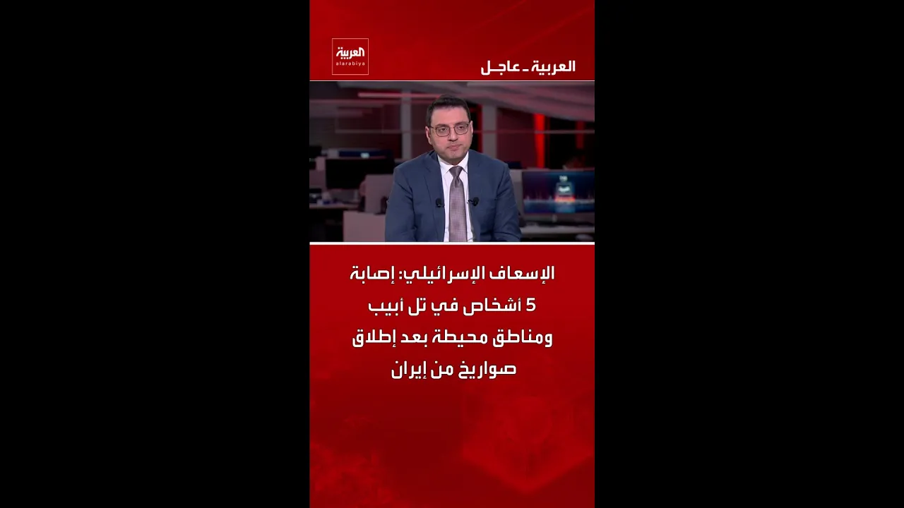 الإسعاف الإسرائيلي: إصابة 5 أشخاص في تل أبيب ومناطق محيطة بعد إطلاق صواريخ من إيران