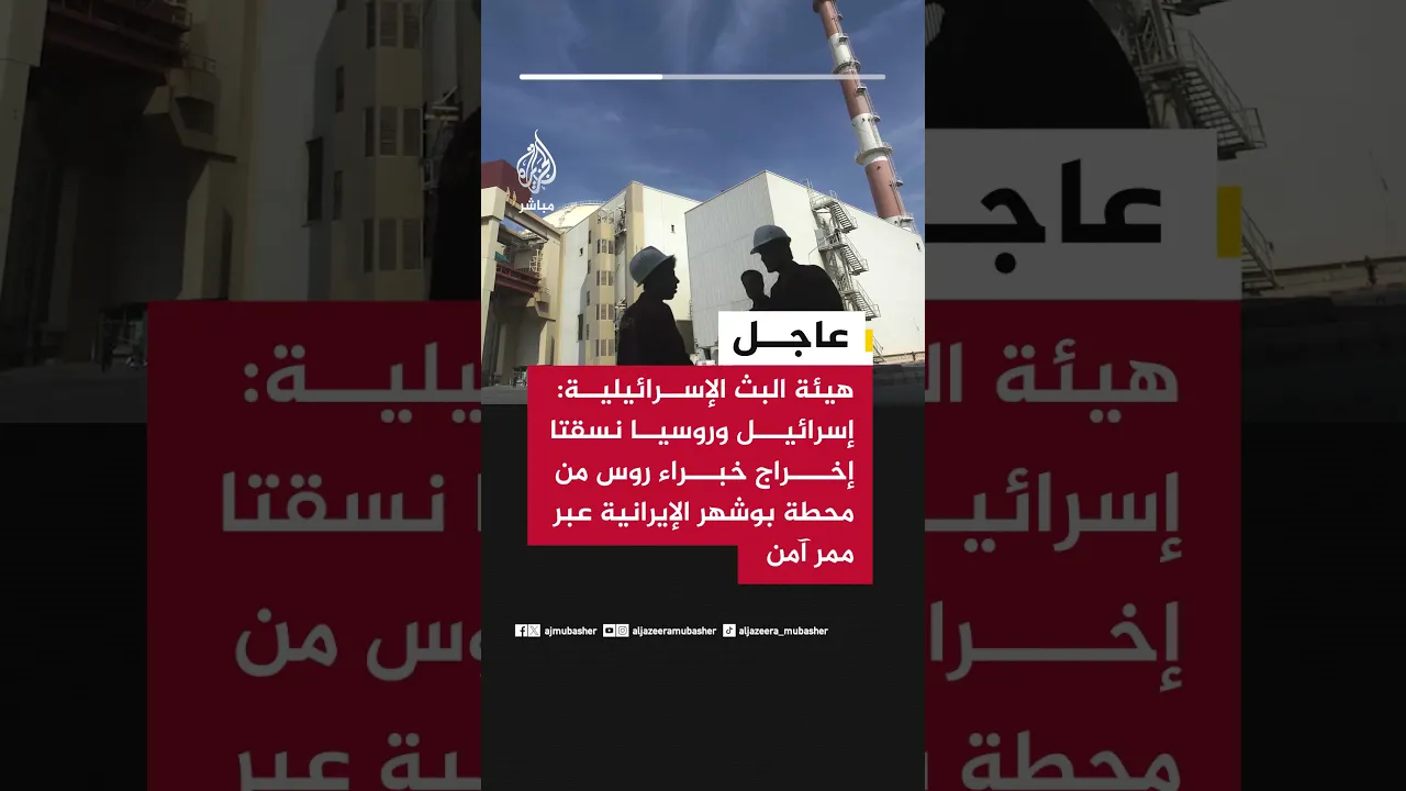 هيئة البث الإسرائيلية عن مصدر دبلوماسي: إسرائيل وروسيا نسقتا إخراج خبراء روس من محطة بوشهر الإيرانية