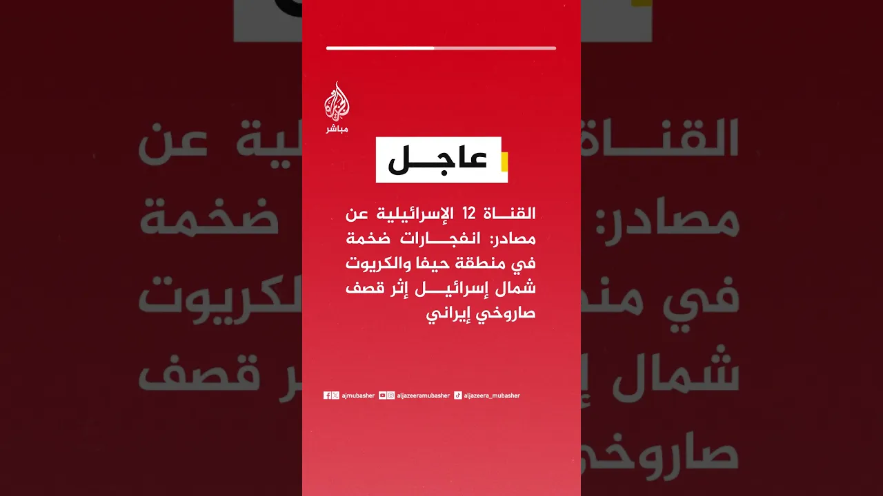 عاجل | القناة 12 الإسرائيلية عن مصادر: انفجارات ضخمة في منطقة حيفا والكريوت شمال إسرائيل إثر قصف صاروخي إيراني