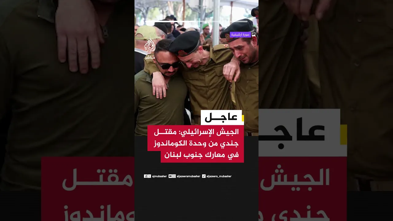 عاجل | الجيش الإسرائيلي: مقتل جندي من وحدة الكوماندوز في معارك جنوب لبنان