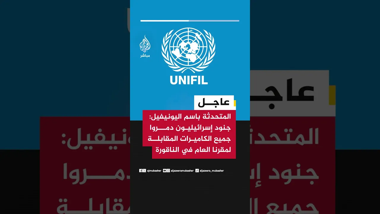 عاجل | المتحدثة باسم اليونيفيل: جنود إسرائيليون دمروا جميع الكاميرات المقابلة لمقرنا العام في الناقورة جنوب لبنان