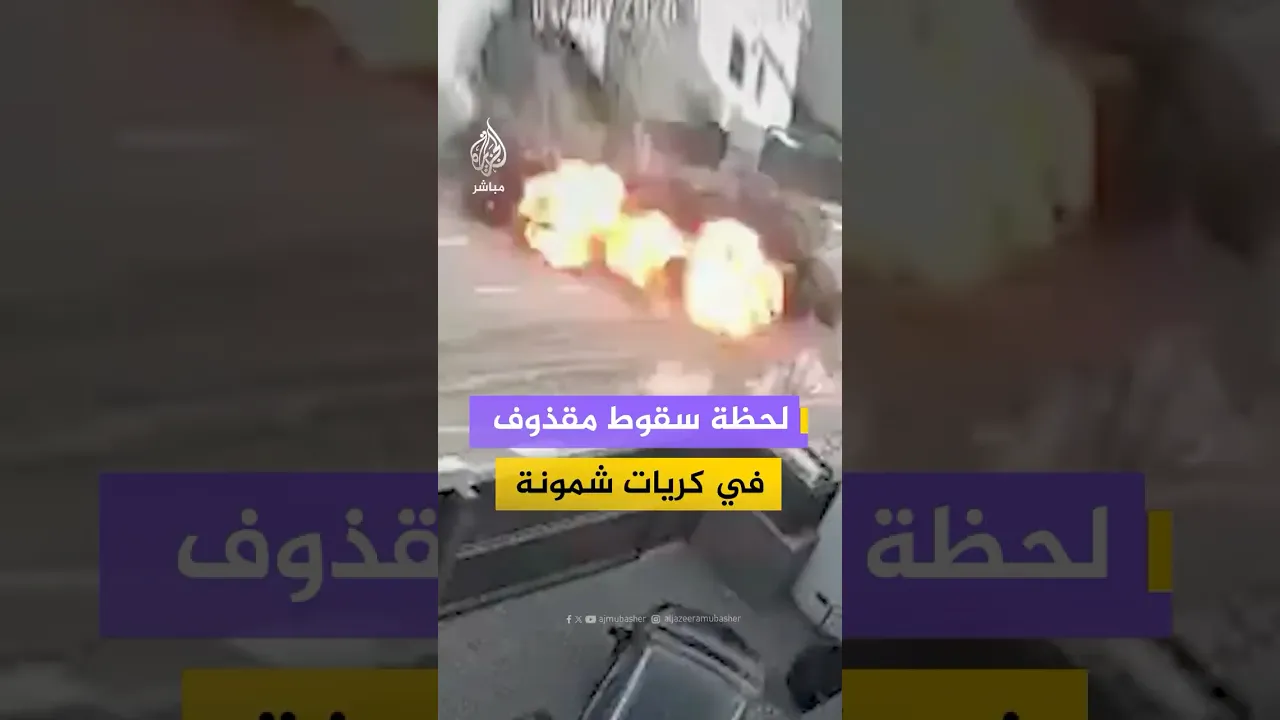 كاميرات مراقبة توثق لحظة سقوط مقذوف في كريات شمونة شمالي إسرائيل