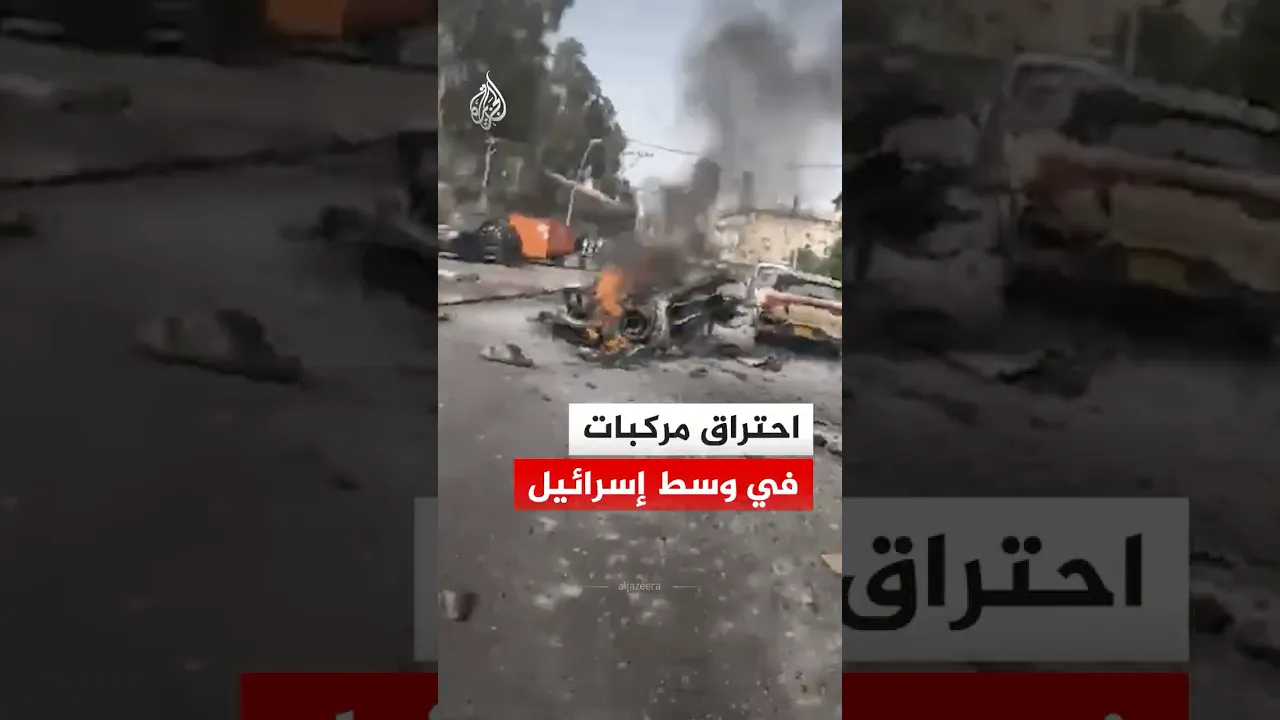 مشاهد توثق اشتعال مركبات عدة وسط إسرائيل جراء سقوط مقذوف وشظايا صاروخية.