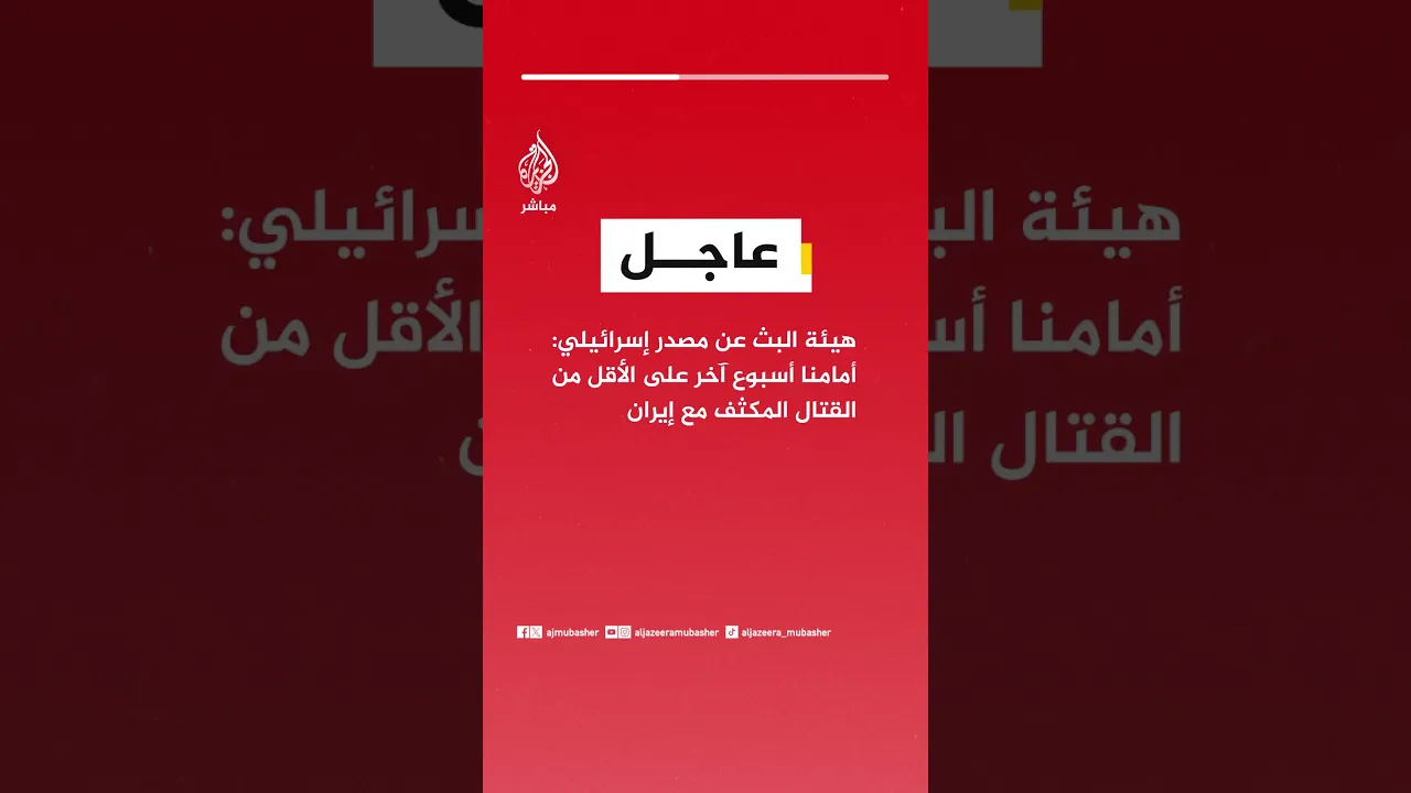 عاجل | هيئة البث عن مصدر إسرائيلي: أمامنا أسبوع آخر على الأقل من القتال المكثف مع إيران
