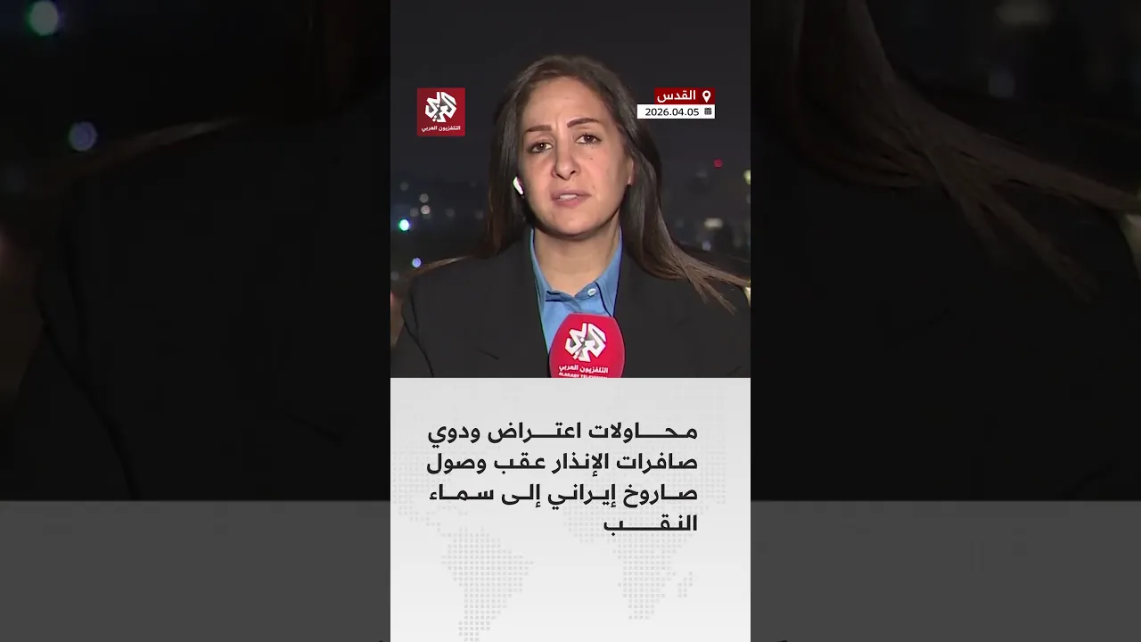 محاولات اعتراض ودوي صافرات الإنذار عقب وصول صاروخ إيراني إلى سماء النقب