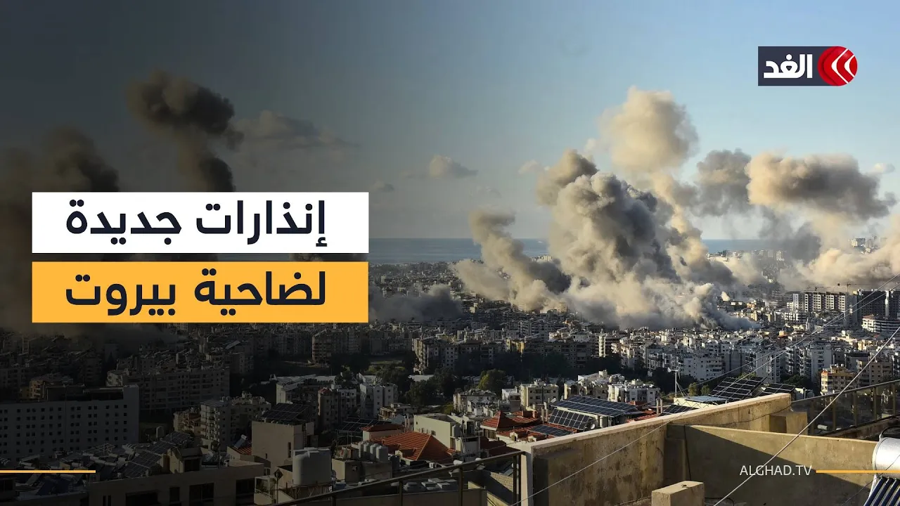 وجه المتحدث باسم الجيش الإسرائيلي أفيخاي أدرعي إنذارين عاجلين عبر منصة "إكس" إلى سكان الضاحية الجنوبية لبيروت، دعا فيهما إلى إخلاء عدد من الأحياء، إضافة إلى مبنى محدد في منطقة الغبيري، في ظل استمرار العمليات العسكرية.. التفاصيل مع مراسلة الغد من مشارف الضاحية الجنوبية لبيروت ليلى خليل