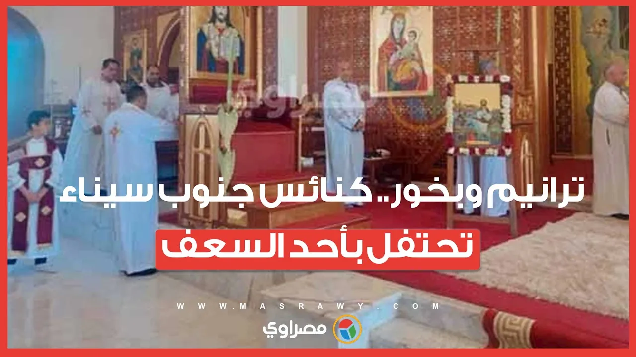 ترانيم وبخور.. كنائس جنوب سيناء تحتفل بأحد السعف