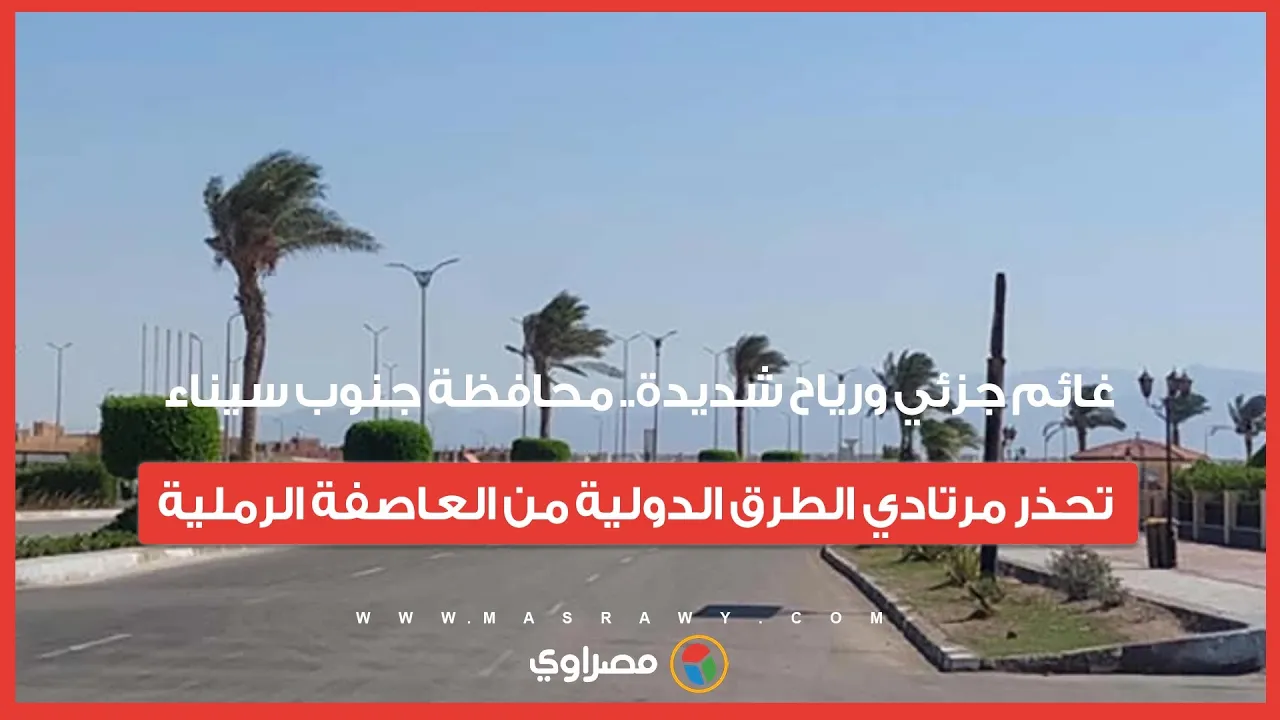 غائم جزئي ورياح شديدة.. محافظة جنوب سيناء تحذر مرتادي الطرق الدولية من العاصفة الرملية