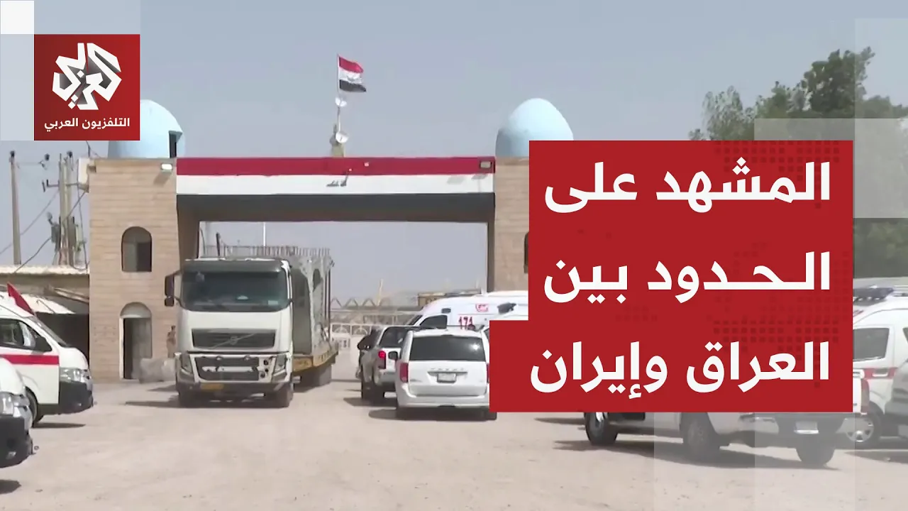 تكدس الشاحنات على امتداد الطريق المؤدي لمنفذ الشلامجة الحدودي بين العراق وإيران بعد استهدافه أمس