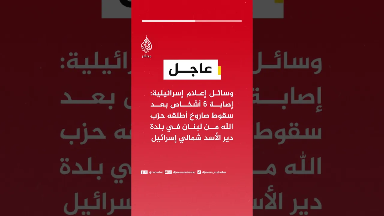عاجل | وسائل إعلام إسرائيلية: إصابة 6 أشخاص بعد سقوط صاروخ أطلقه حـ ـزب الله من لبنان في بلدة دير الأسد شمالي إسرائيل