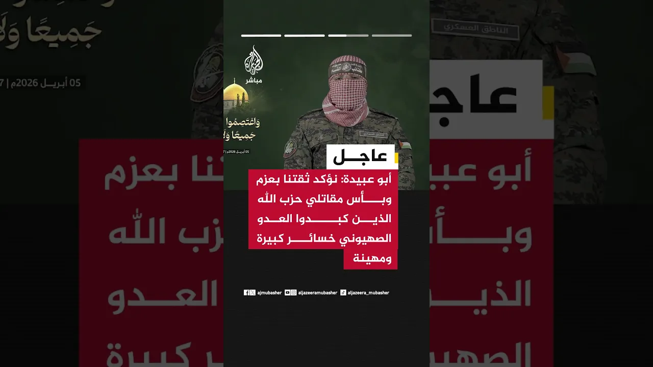 📌أبو عبيدة: نؤكد ثقتنا بعزم وبأس مقاتلي حزب الله الذين كبدوا العدو الصهيوني خسائر كبيرة ومهينة