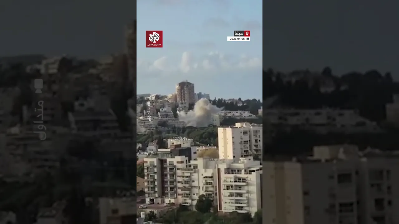 لحظة سقوط صاروخ إيراني في حيفا وتصاعد الدخان من المكان
