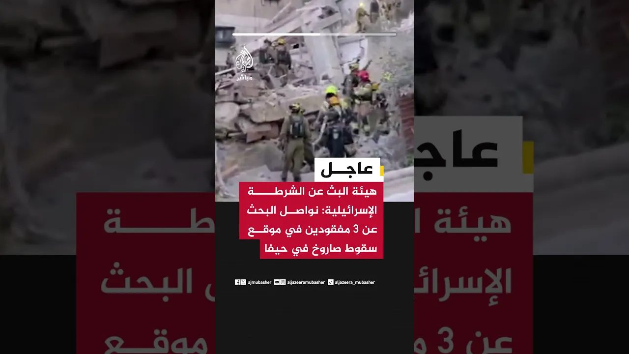 هيئة البث عن الشرطة الإسرائيلية: نواصل البحث عن 3 مفقودين في موقع سقوط صاروخ في حيفا