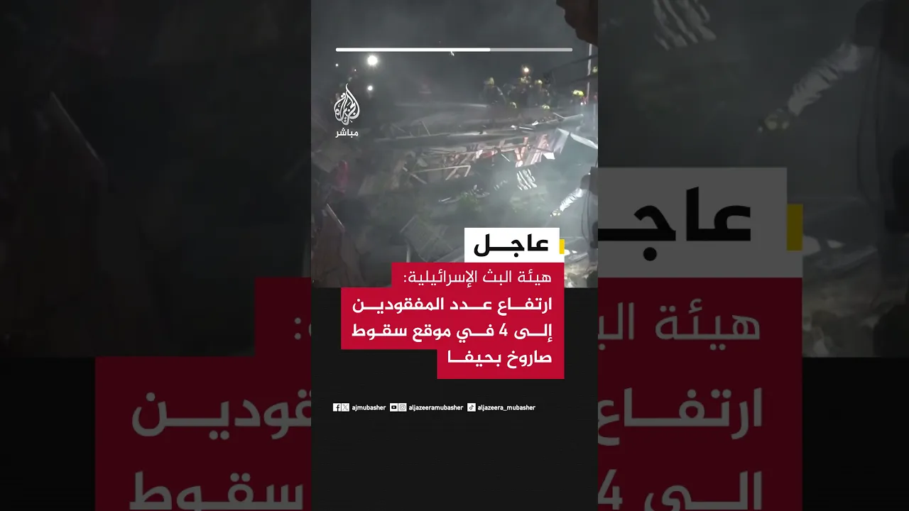 عاجل | هيئة البث الإسرائيلية: ارتفاع عدد المفقودين إلى 4 في موقع سقوط صاروخ بحيفا