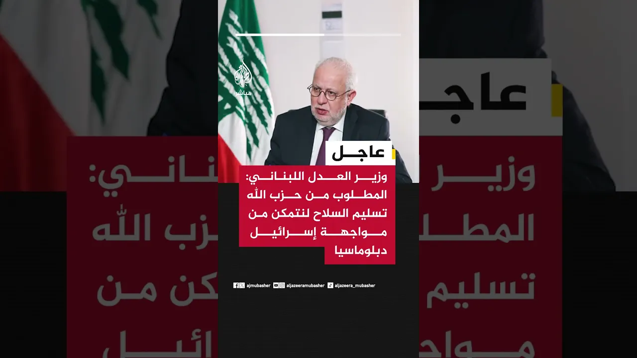 عاجل | وزير العدل اللبناني للجزيرة مباشر: المطلوب من حزب الله الآن تسليم السلاح للدولة اللبنانية حتى نتمكن من مواجهة إسرائيل عن طريق الدبلوماسية