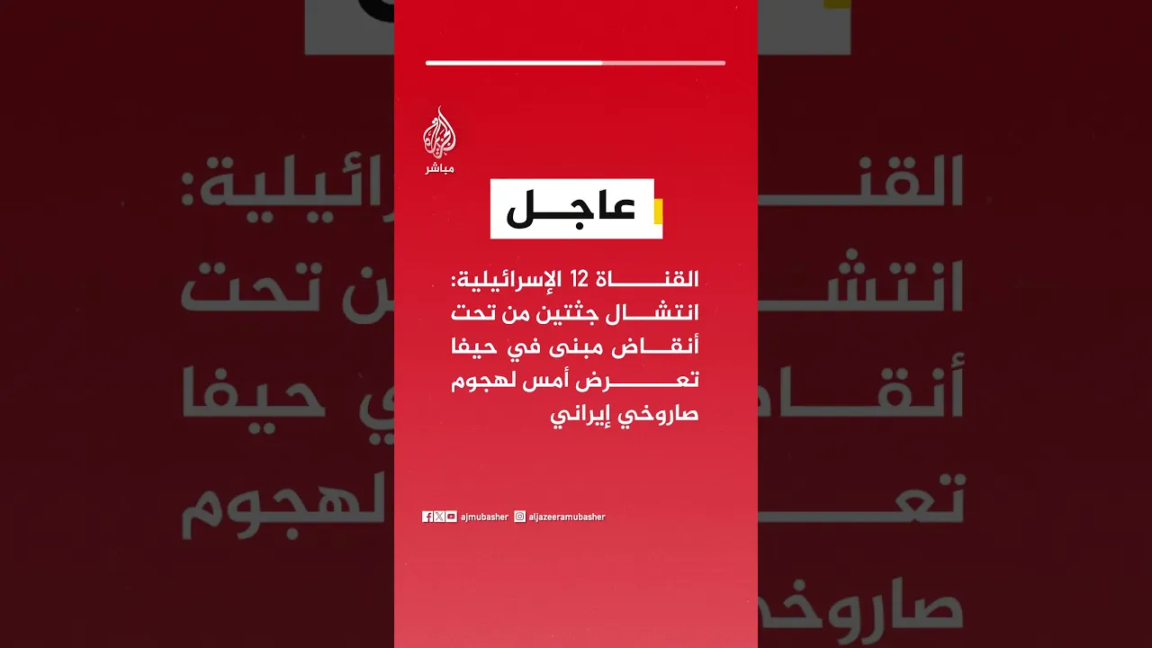 عاجل | القناة 12 الإسرائيلية: انتشال جثتين من تحت أنقاض مبنى في #حيفا تعرض أمس لهجوم صاروخي إيراني
