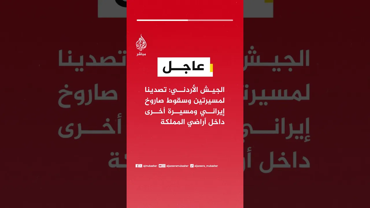 عاجل | الجيش الأردني: تصدينا لمسيرتين وسقوط صاروخ إيراني ومسيرة أخرى داخل أراضي المملكة