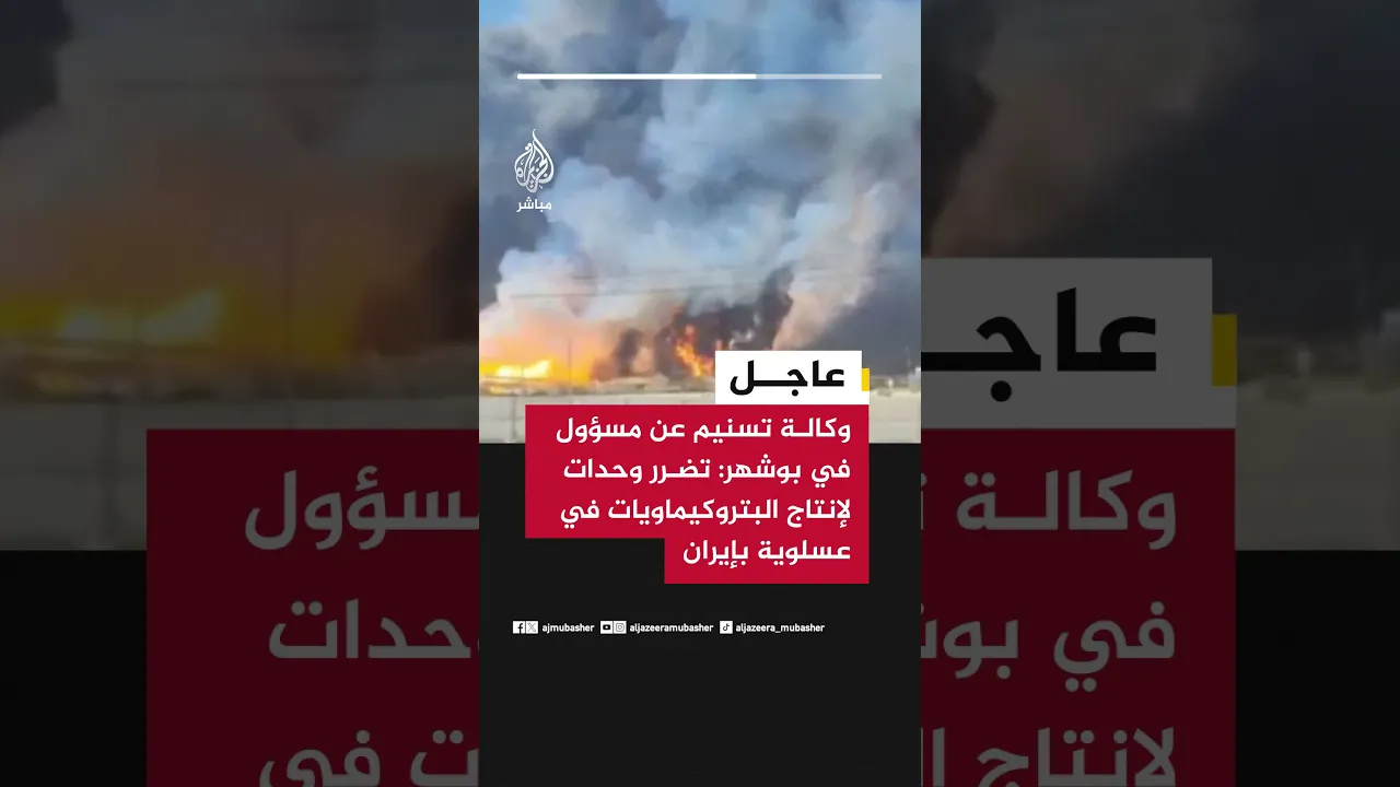 عاجل | وكالة تسنيم عن مسؤول في بوشهر: تضرر وحدات لإنتاج البتروكيماويات في عسلوية بإيران