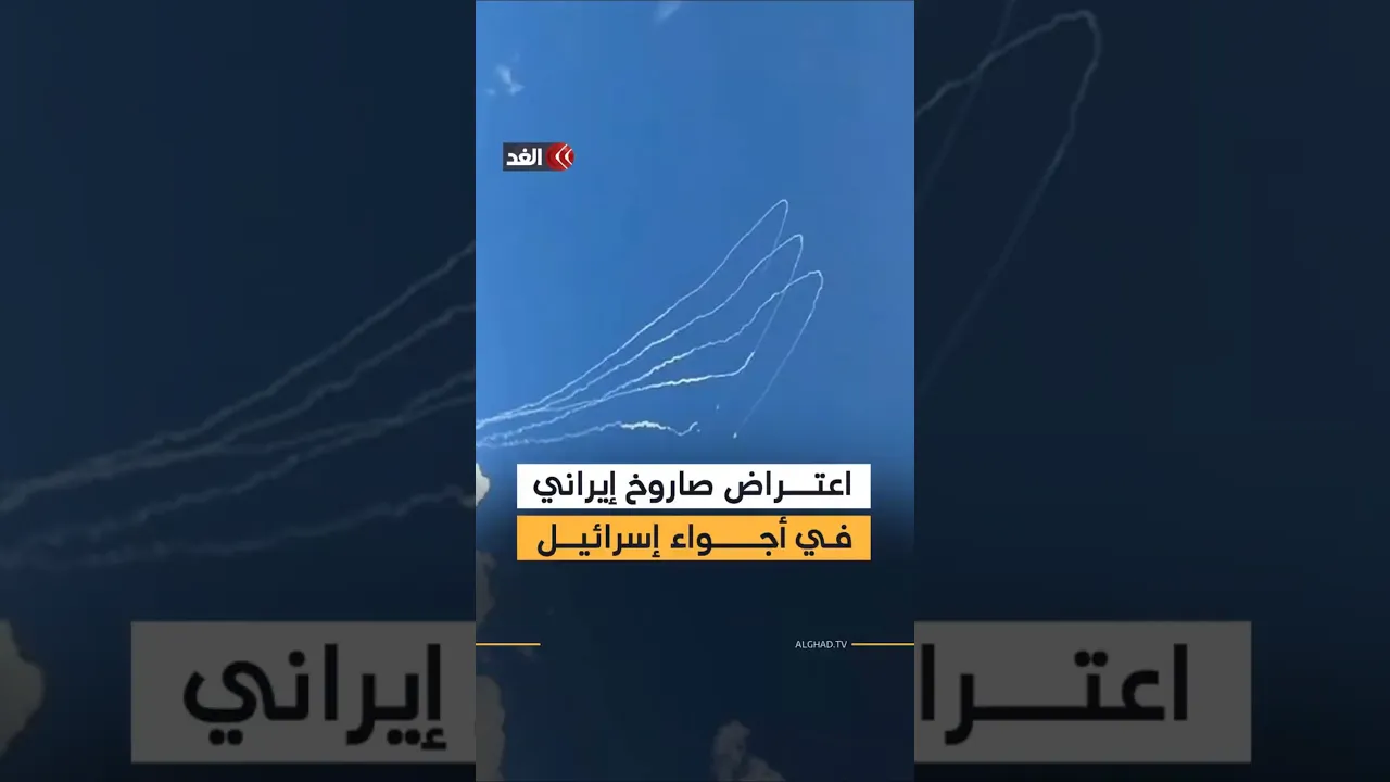 مشاهد لمحاولات الدفاعات الجوية اعتراض صاروخ عنقودي أطلق من إيران باتجاه وسط إسرائيل فيما أعلنت هيئة الإطفاء تلقيها بلاغات عن سقوط شظايا صاروخية في عدد من المواقع شرق مدينة تل أبيب