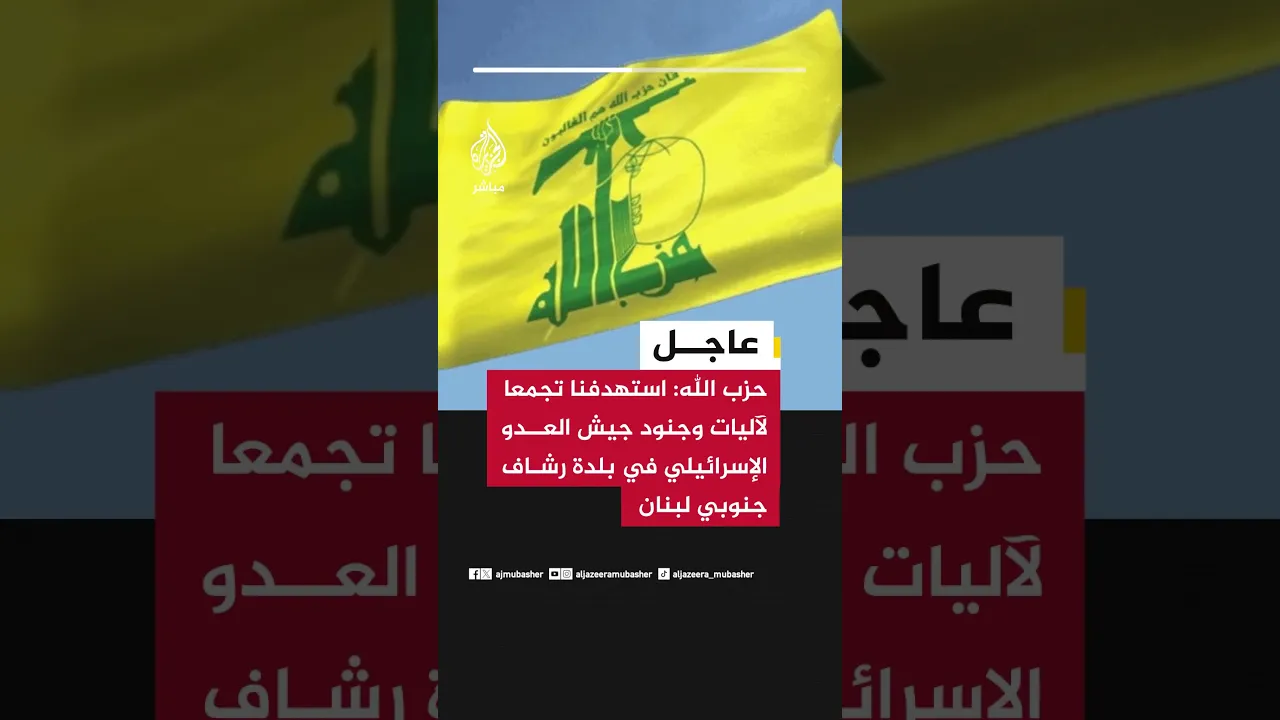 عاجل | حـ ـزب الله: استهدفنا تجمعا لآليات وجنود جيش العدو الإسرائيلي في بلدة رشاف جنوبي لبنان
