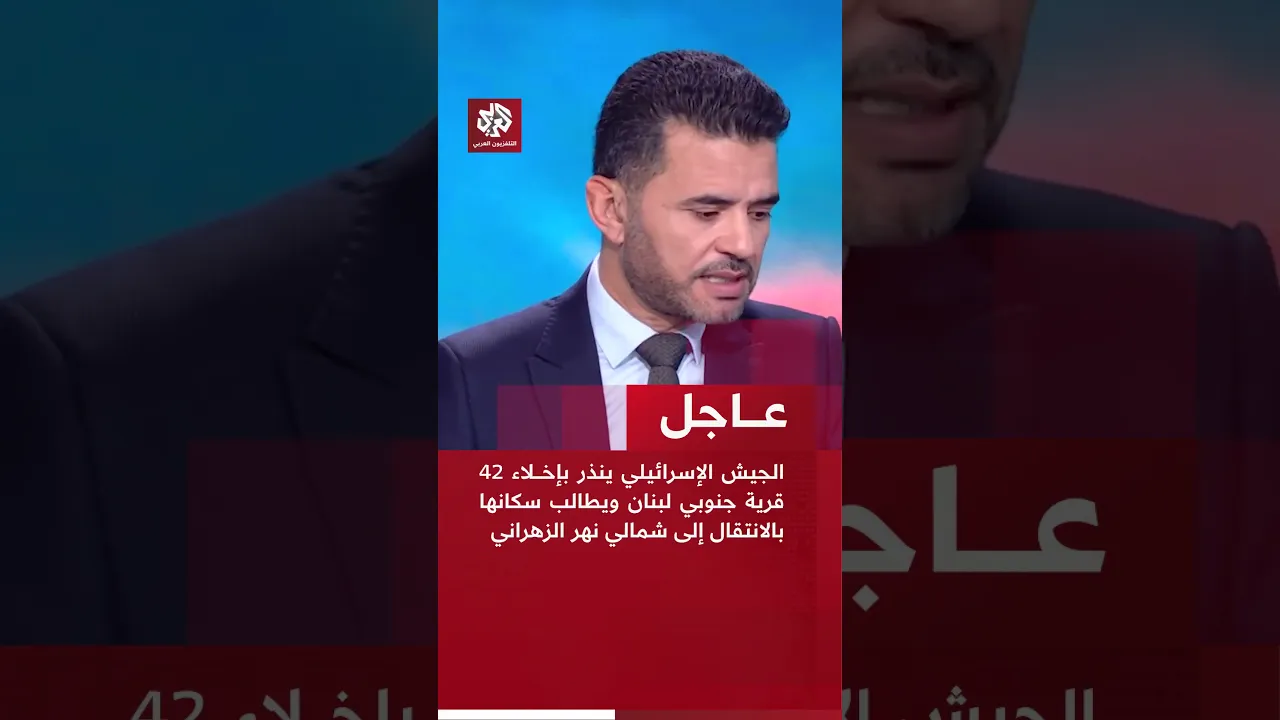 عاجل |الجيش الإسرائيلي ينذر بإخلاء 42 قرية جنوبي لبنان ويطالب سكانها بالانتقال إلى شمال نهر الزهراني