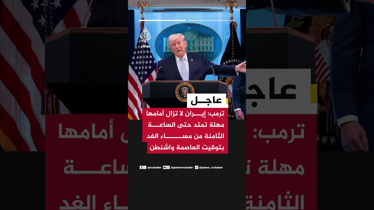 ترمب: إيران لا تزال أمامها مهلة تمتد حتى الساعة الثامنة من مساء الغد بتوقيت العاصمة واشنطن