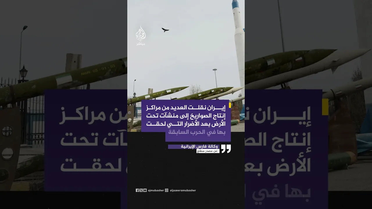 وكالة فارس الإيرانية عن مصدر مطلع: إيران نقلت العديد من مراكز إنتاج الصواريخ إلى منشآت تحت الأرض بعد الأضرار التي لحقت بها في الحرب السابقة