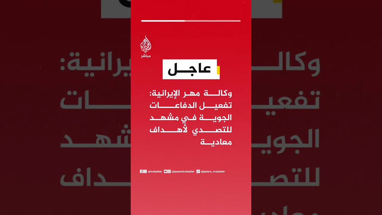 عاجل | وكالة مهر الإيرانية: تفعيل الدفاعات الجوية في مشهد للتصدي لأهداف معادية