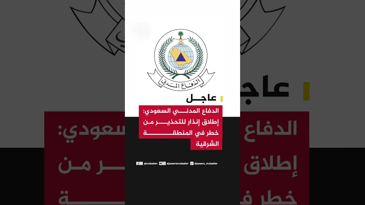 عاجل | الدفاع المدني السعودي: إطلاق إنذار للتحذير من خطر في المنطقة الشرقية