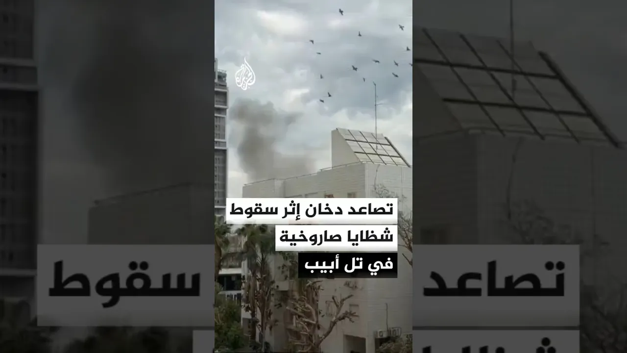 صور لتصاعد أعمدة الدخان إثر سقوط شظايا صاروخية على أحد المباني في تل أبيب
