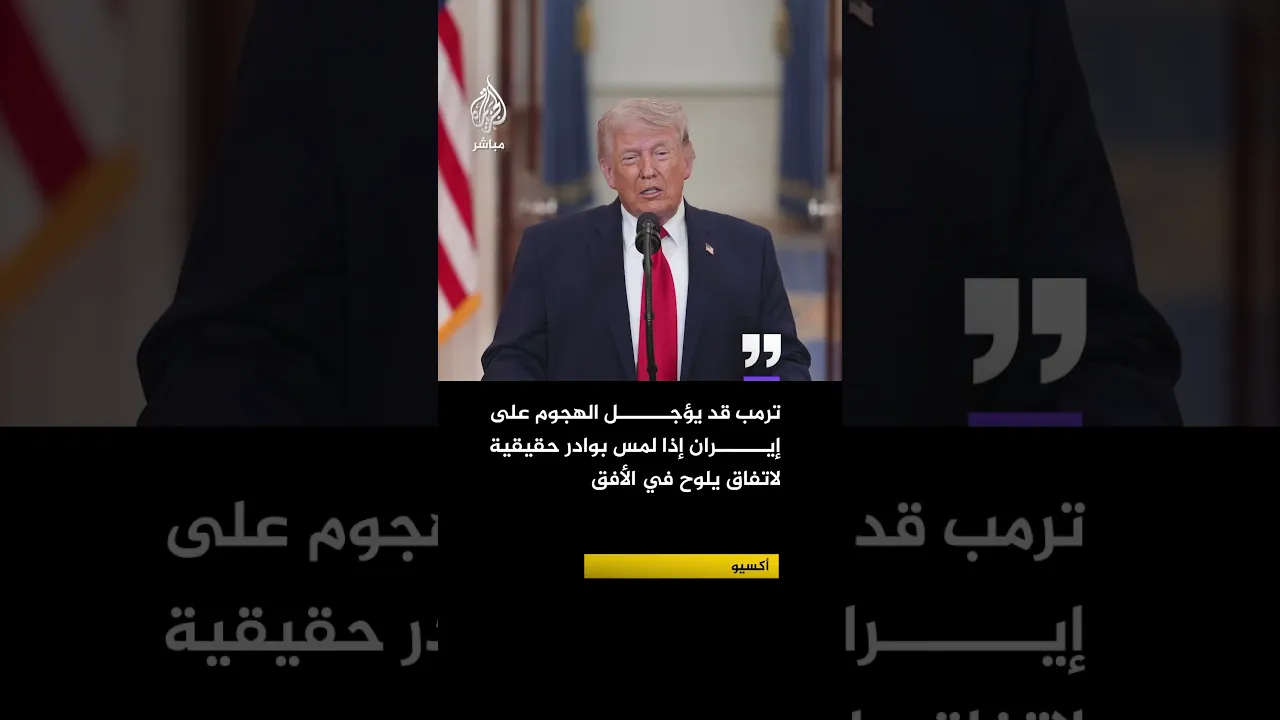 - ترمب قد يؤجل الهجوم على #إيران إذا لمس بوادر حقيقية لاتفاق يلوح في الأفق