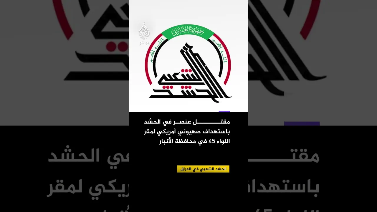 الحشد الشعبي في العراق: مقتل عنصر في الحشد باستهداف صهيوني أمريكي لمقر اللواء 45 في محافظة الأنبار