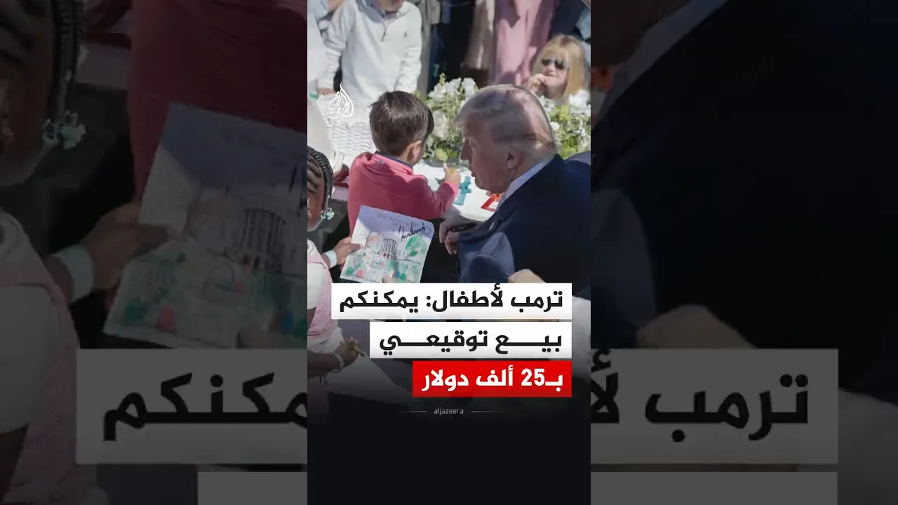 الرئيس الأمريكي دونالد ترمب يقول لمجموعة من الأطفال إن بإمكانهم بيع توقيعه الشخصي مقابل 25 ألف دولار، وذلك خلال فعالية في البيت الأبيض بمناسبة ما يعرف بعيد الفصح