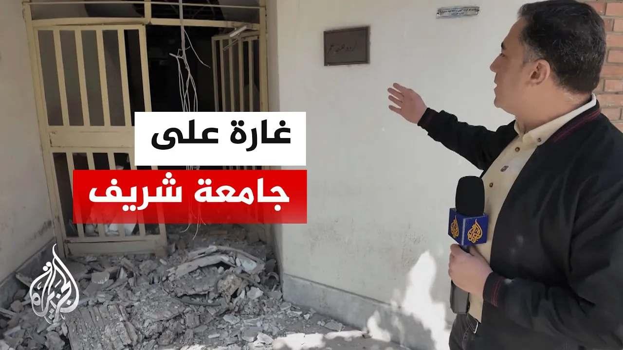 مراسل الجزيرة يرصد آثار الدمار في جامعة شريف للصناعة والتكنولوجيا في طهران