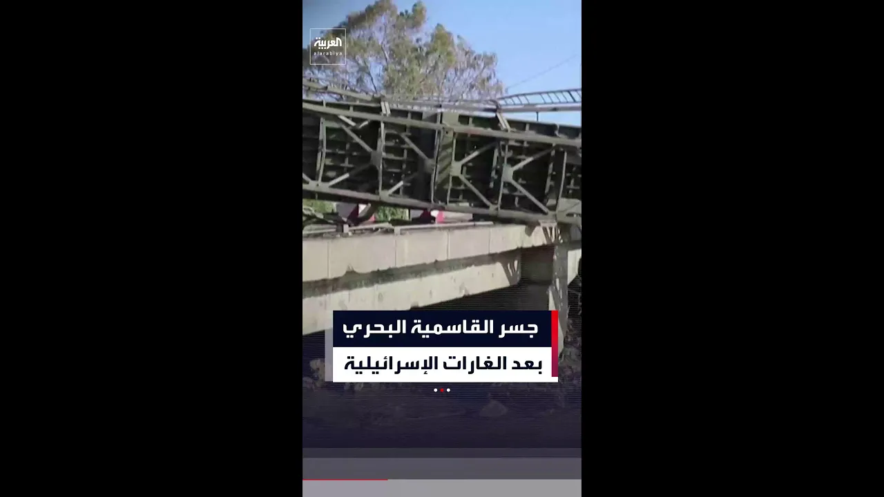 آثار الغارات الإسرائيلية على جسر القاسمية البحري في جنوب لبنان
