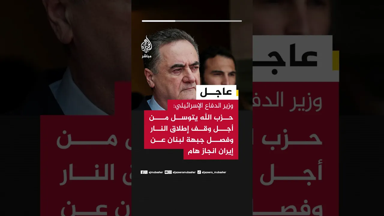 وزير الدفاع الإسرائيلي: حزب الله يتوسل من أجل وقف إطلاق النار وفصل جبهة لبنان عن إيران انجاز هام