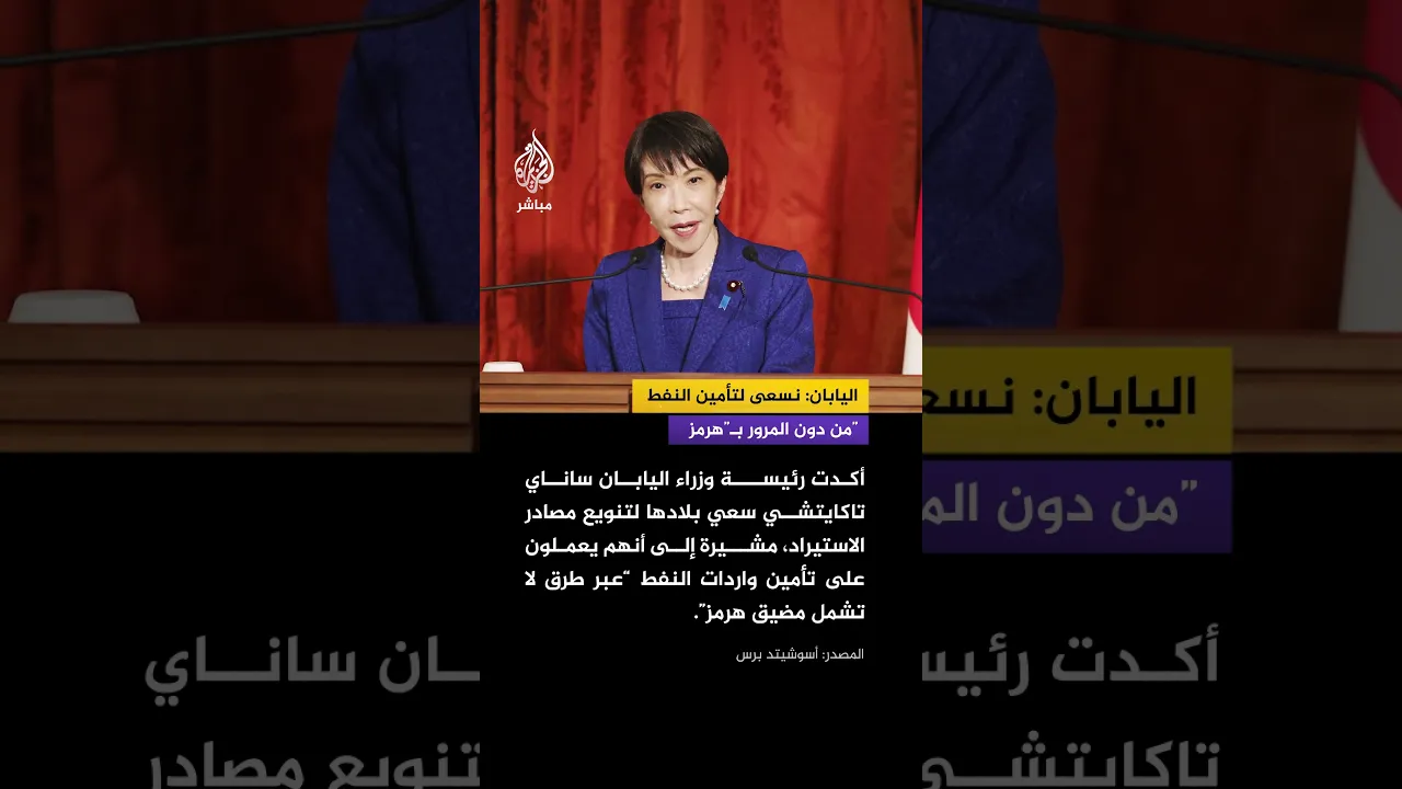 رئيسة وزراء اليابان: نعمل على تأمين واردات النفط عبر طرق لا تشمل مضيق هرمز