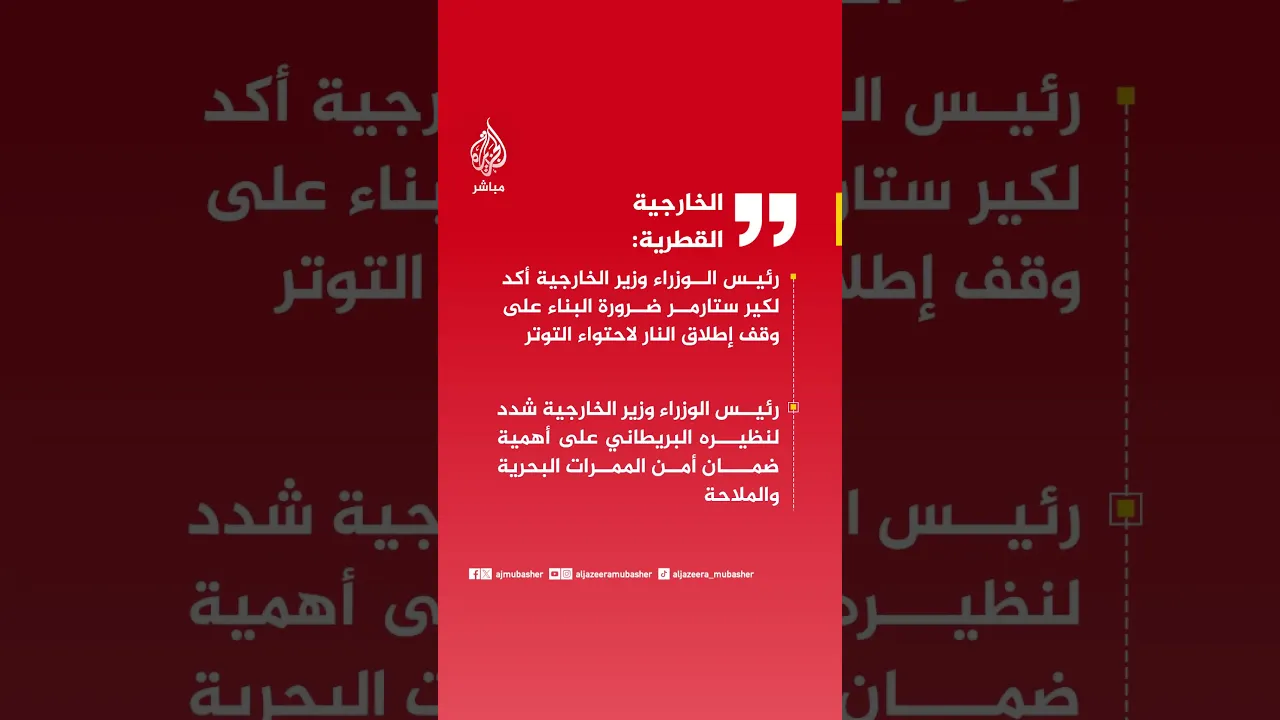 عاجل | الخارجية القطرية: رئيس الوزراء وزير الخارجية أكد لكير ستارمر ضرورة البناء على وقف إطلاق النار لاحتواء التوتر