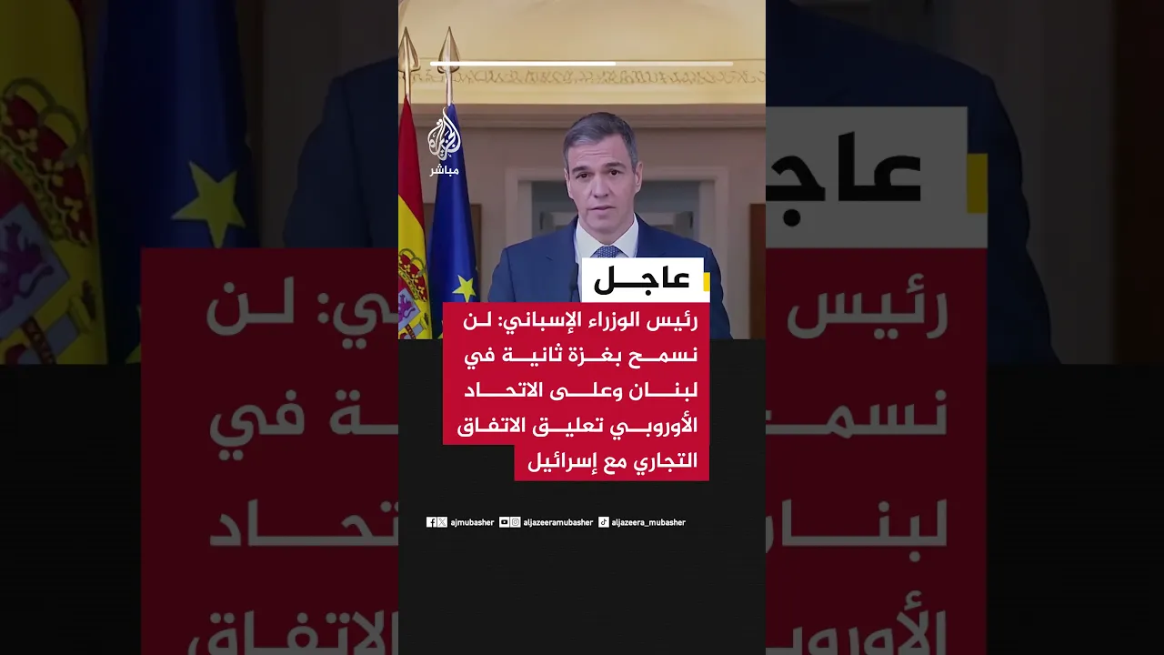 رئيس الوزراء الإسباني: لن نسمح بغزة ثانية في لبنان وعلى الاتحاد الأوروبي تعليق الاتفاق التجاري مع إسرائيل
