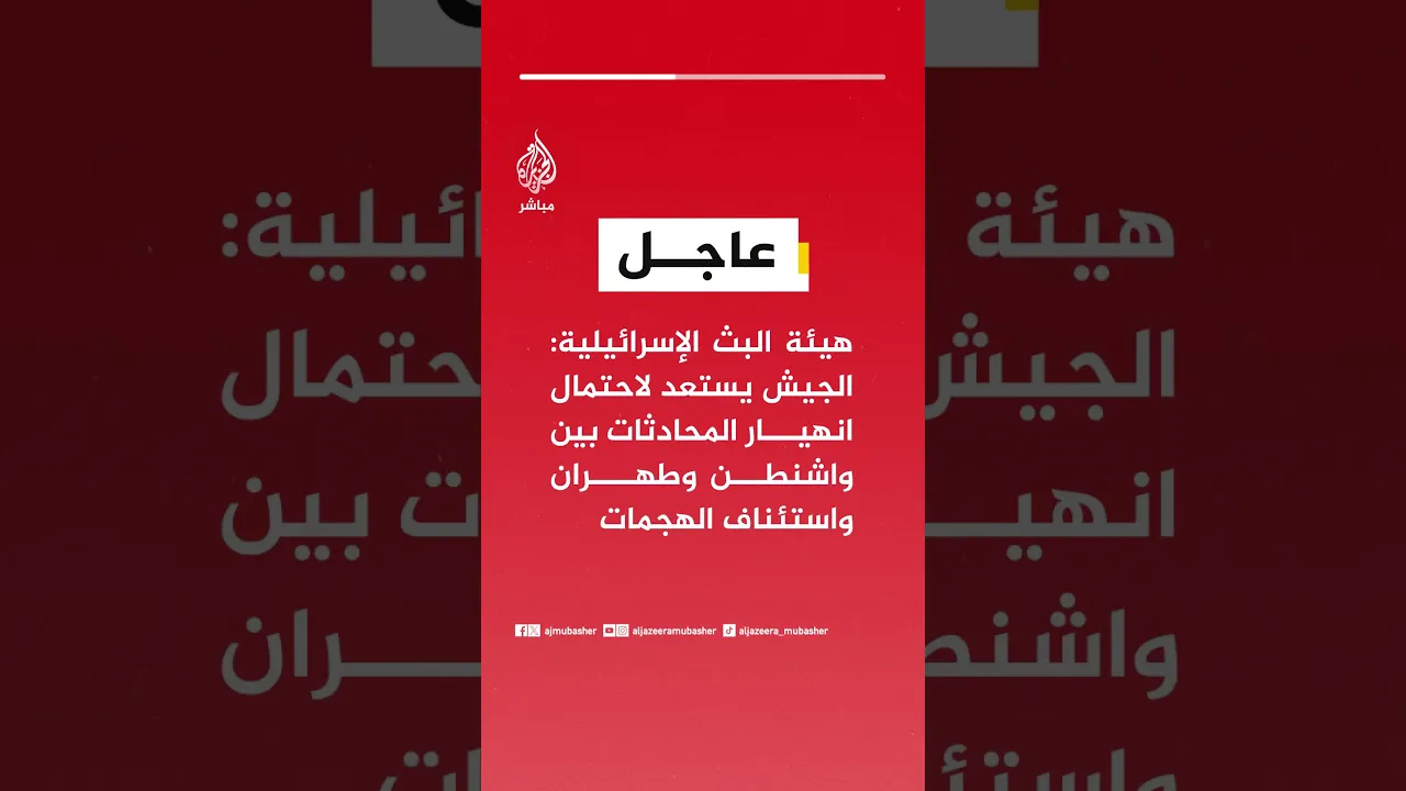 📌عاجل | هيئة البث الإسرائيلية: الجيش يستعد لاحتمال انهيار المحادثات بين واشنطن وطهران واستئناف الهجمات
