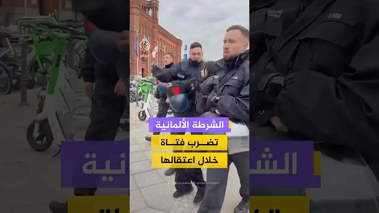 الشرطة الألمانية تعتدي على فتاة بالضرب خلال اعتقالها عقب مشاركتها وآخرين في تظاهرة احتجاجية ببرلين دعما لغزة ولبنان وإيران