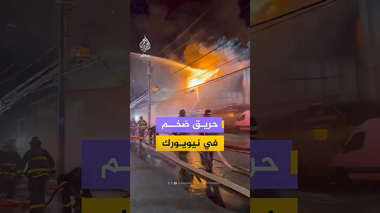 منصات أمريكية توثق اندلاع حريق ضخم في مستودع تجاري بمنطقة كوليدج بوينت في حي كوينز بمدينة نيويورك