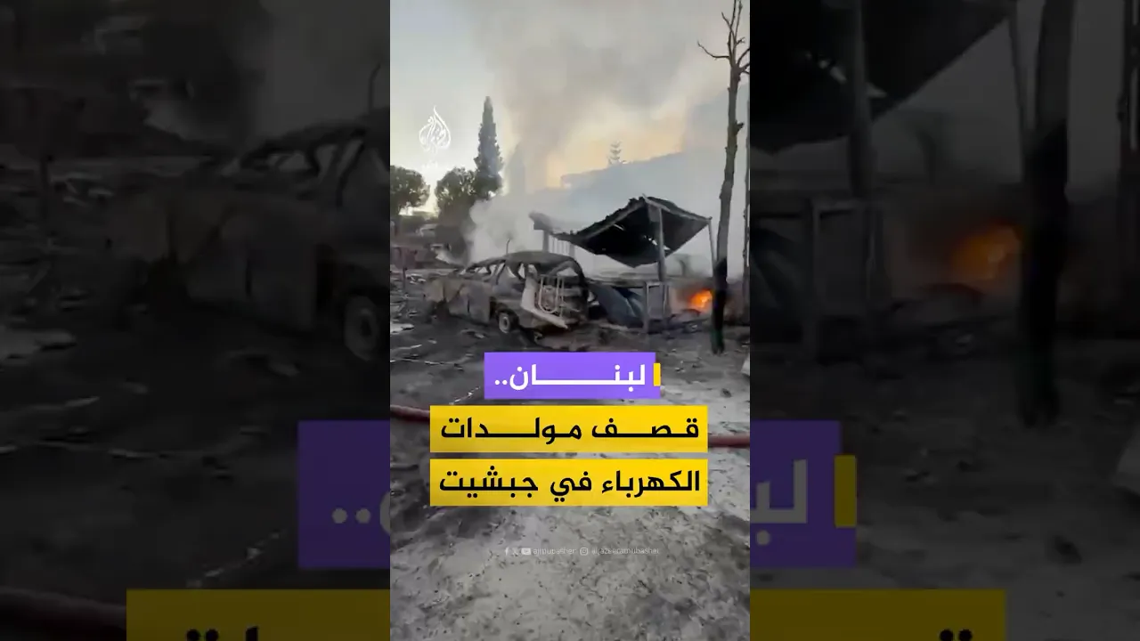 اندلاع حريق في جبشيت جنوبي لبنان إثر غارة إسرائيلية استهدفت مولدات الكهرباء بالبلدة فجر اليوم
