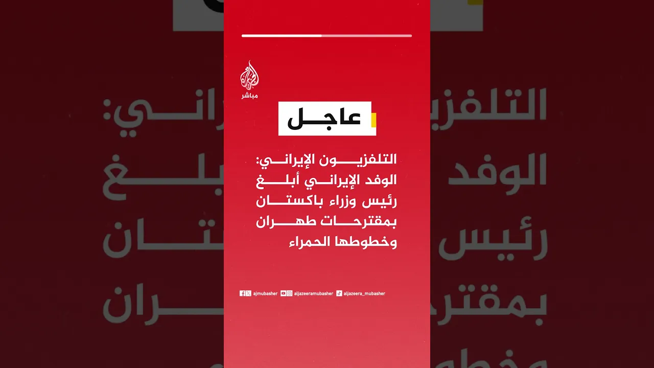 عاجل | التلفزيون الإيراني: الوفد الإيراني أبلغ رئيس وزراء باكستان بمقترحات طهران وخطوطها الحمراء