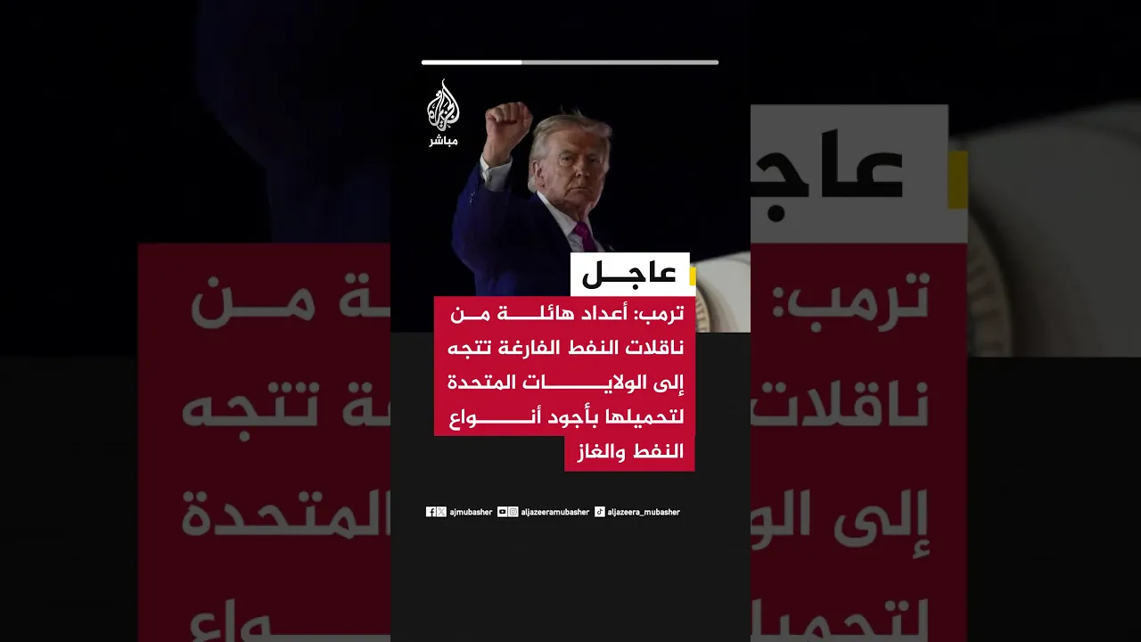 عاجل | ترمب: لدينا احتياطيات نفطية تفوق ما يمتلكه ثاني وثالث أكبر اقتصادين نفطيين مجتمعين ونفطنا يتميز بجودة أعلى