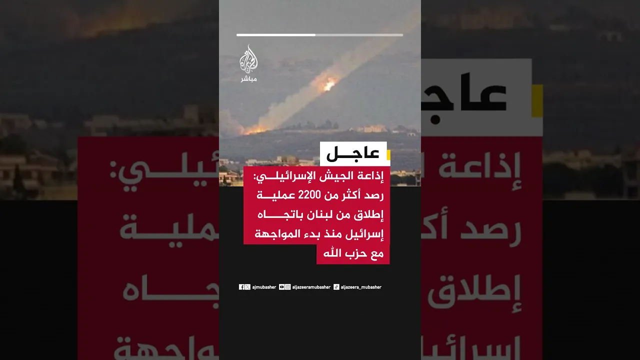 عاجل | إذاعة الجيش الإسرائيلي: رصد أكثر من 2200 عملية إطلاق من لبنان باتجاه إسرائيل منذ بدء المواجهة مع حـ ـزب الله