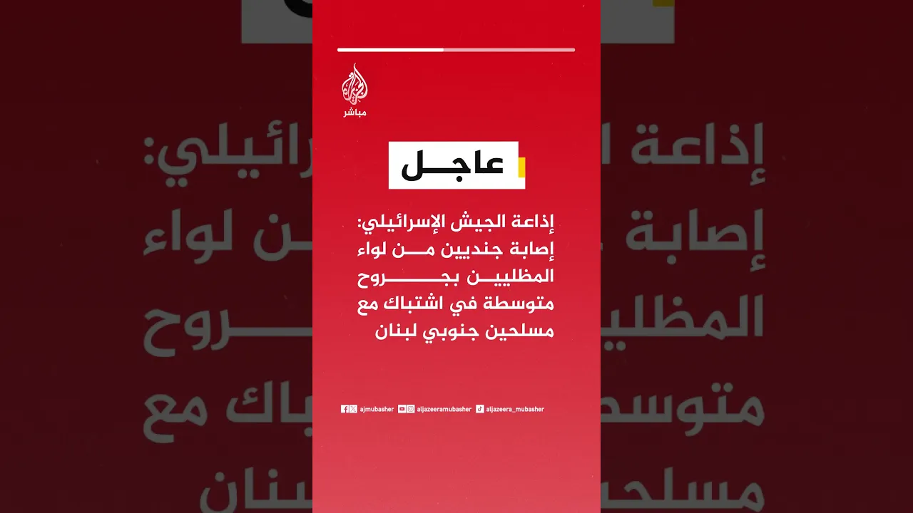 عاجل | إذاعة الجيش الإسرائيلي: إصابة جنديين من لواء المظليين بجروح متوسطة في اشتباك مع مسلحين جنوبي لبنان